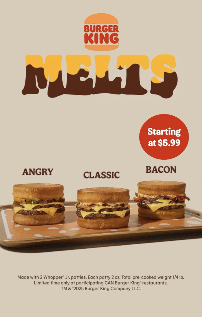 BK Melts are back and better at Burger King in Harvest Hills! Two Whopper Jr. patties, three craveable flavours, starting at just $5.99.