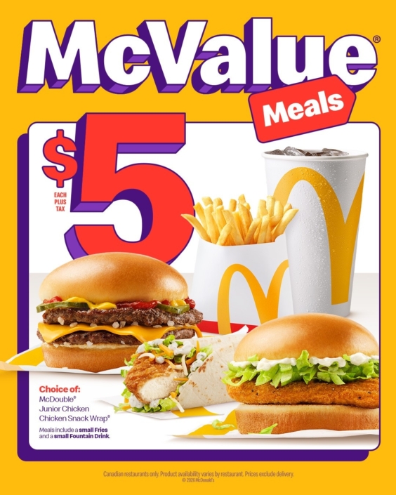 Grab a McValue Meal for only $5 each plus tax at participating Canadian McDonald’s restaurants.